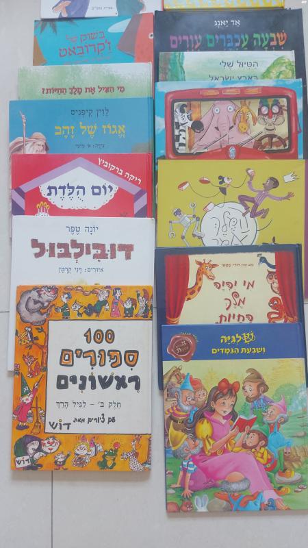 למכירה מבחר ענק של ספרי ילדים ותינוקות (חדשים) כגון, 100 סיפורים ראשונים, השלגיה ושבעת הגמדים, האריה שאהב תות, דגדוגים, מי יניה מלך החיות,בגדי המלך החדשים, מעשה בחמישה בלונים,הצב של אורן, בלאגן בגן. סבא בישל מרק,שלולי, בשוק של ז'קרובאט ועוד המון ספרים ..בהזדמנות ! אין מכירה של ספר בודד מבחר ענק של ספרי ילדים