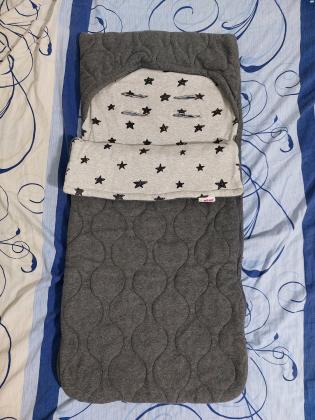 חיבוקית פליז של מיננה במצב מצויין. צבע אפור. מתאימה לכל עגלה. מוצר מעולה לחורף שמיכת פליז לעגלה של מיננה