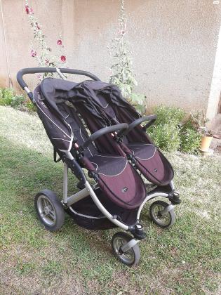 טיולון לתאומים, מצב מעולה. ניתן לכוון כל מושב באופן עצמאי. מתקפל בקלות טיולון לתאומים