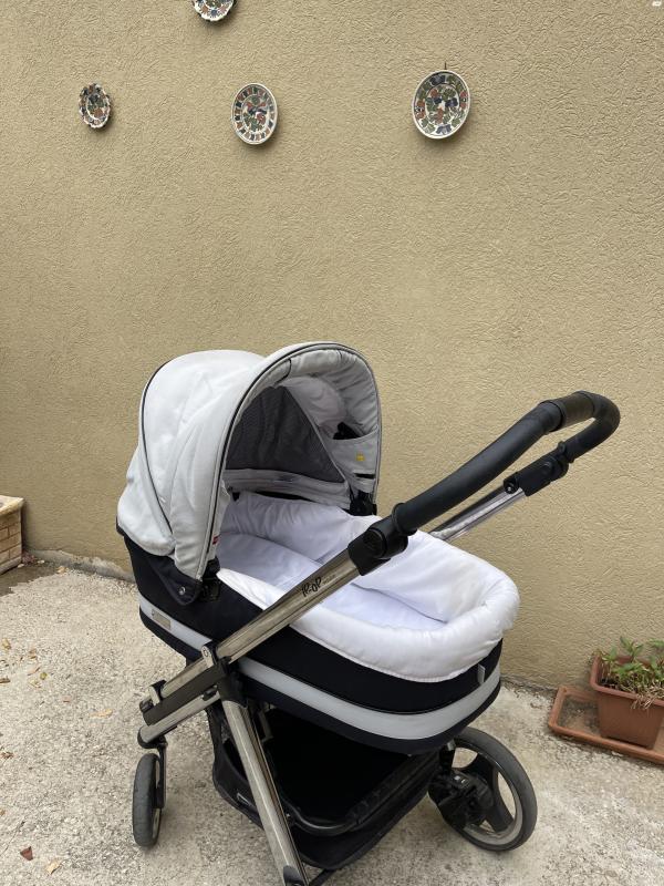 עגלה יוקרתית ואלגנטית מבית Bebe Car ספרד, באיכות גבוהה עם ידית דחיפה מתכווננת לגובה וקיפול נוח, במצב מעולה. העגלה כוללת מיטת אמבטיה, טיולון וסלקל. מגיע עם תיק מתנה עגלת תינוק BebeCar