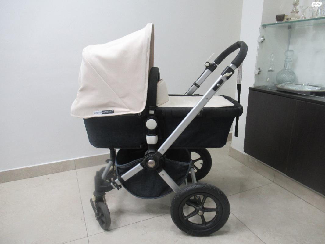 עגלת בוגבו קמיליון, אמבטיה וטיולון בצבע ג'ינס - מתחבר גגון בצבע בז', כולל מחזיק לכוס, כיסוי לגשם ומתאמים לסלקל. דרוש תיקון קל עגלת בוגבו bugaboo קמיליון
