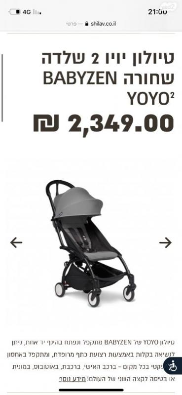 עגלת טיולון יויו 2 חדשה!!! נקנתה לפני חודש בשילב. היתה בשימוש פעמים בודדות! שלדה שחורה בד אפור מלאנג? מהמם, מגיעה עם תוספות שנקנו בנפרד( מאריך לרגליים מקורי של יויו, צבע נוסף של בד להחלפה ( שחור) פגוש לידיים ותיק נשיאה ) עגלה מושלמת! עגלת טיולון יויו 2