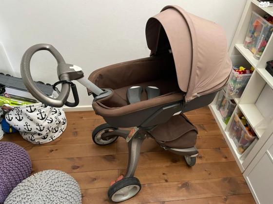 עגלת סטוקי במצב מצויין כולל אמבטיה, טיולון, מתאמים לסלקל מסוג Cybex, תיק תחתון, כיסוי חורף וכיסוי גשם עגלת Stokke
