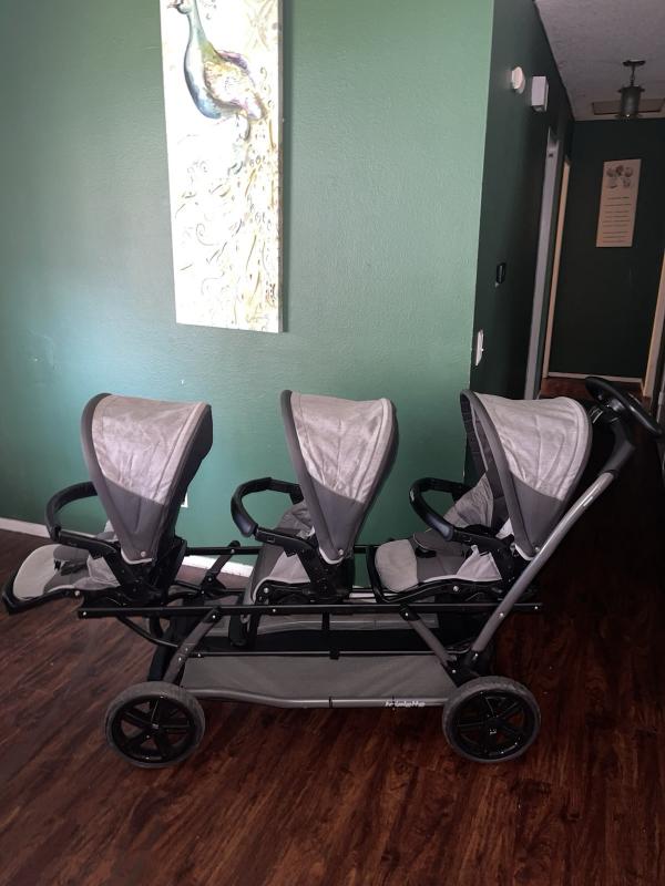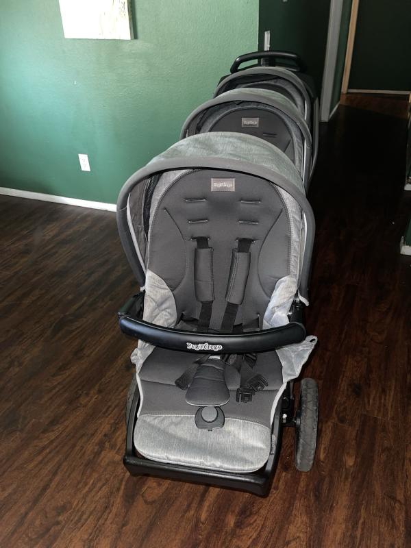 עגלת פג פרגו משולשתניתנת לקפל בקלות והמושבים ניתנים לקפל ולהישען לאחור.