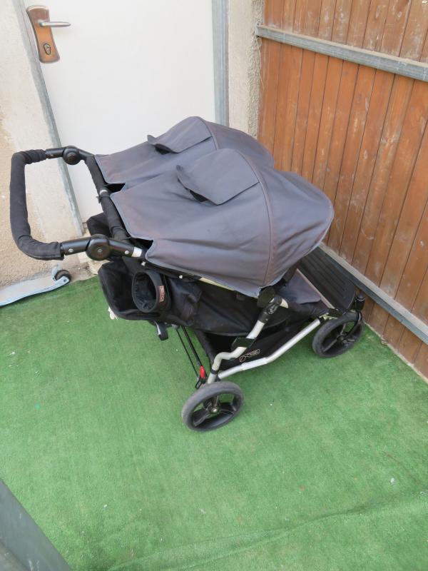 עגלת תאומים מאונטיין באגי במצב מעולה בצבע אפור ושחור. כולל כיסוי גשם מקורי. וכולל כיסוי בד לידית. העגלה נקנתה בחנות ניו בורן לפני שנתיים וחצי ב 2500 שקל. הבד דהה מעט בכמה מקומות, וזה לא מורגש כמעט עקב צבעו האפור של הבד. המחיר 1400 שקל גמיש עגלת תאומים מאונטיין באגי