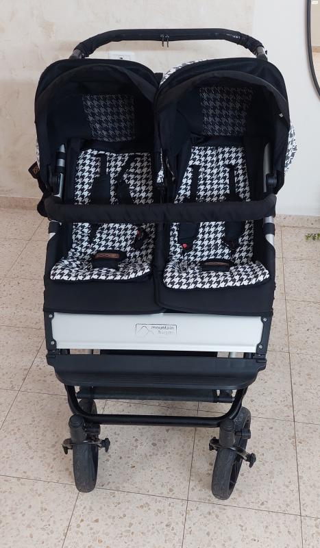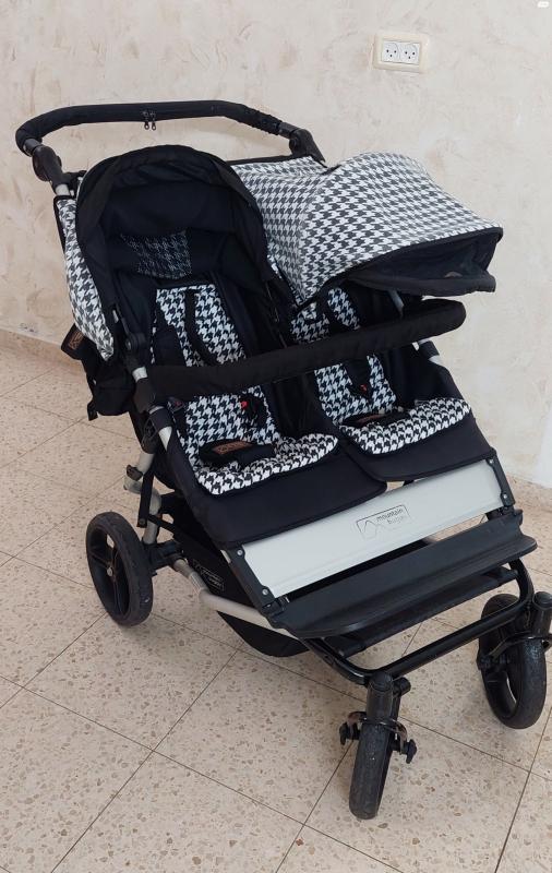 עגלת תאומים מאונטיין באגי - Mountain Buggy, צבע פפיטה מיוחד, שמורה מאוד, חזקה ואיכותית. צרה במיוחד - 63 ס"מ עגלת תאומים mountain buggy