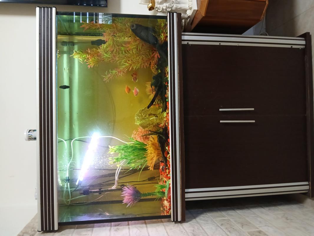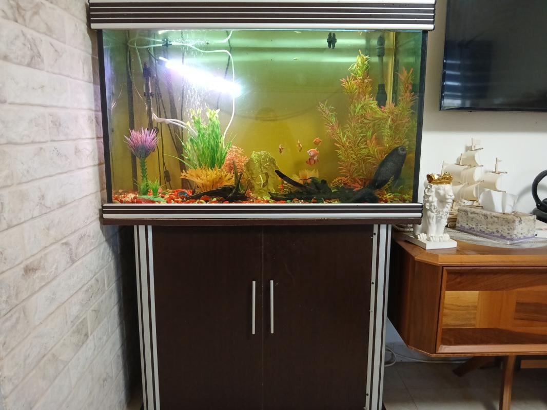 אקווריום כולל כל הציוד הנדרש פילטר, חמצן, נורות לד, ערכת ניקוי, כולל הדגים שידה מותאמת מהממת האקווריום בגודל 1.00×65.5 מתאים לכל בית.