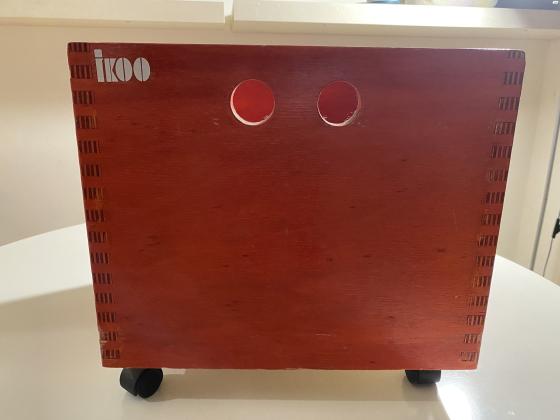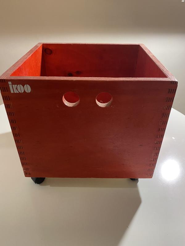 ארגז צעצועים מעץ מלא בצבע אדום, עם גלגלים. מהמם! שמור מאוד! מידות: 35x37 ס״מ. גובה כולל הגלגלים: 37 ס״מ ארגז צעצועים מעץ מלא