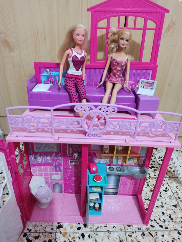 בית בובות לברבי נפתח, הכולל חדר שינה, סלון, שירותים ומטבח. כולל רהיטים ואביזרים (לא כולל הברביות) בית בובות לברבי+ ריהוט+אביזרים