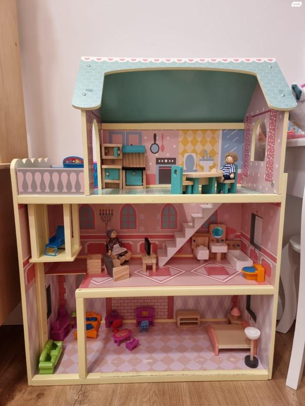 למכירה: בית בובות ענק מעץ 3 קומות עם מרפסת ומעלית, הכולל אבזור מלא. 300 שקלים בית בובות ענק מעץ