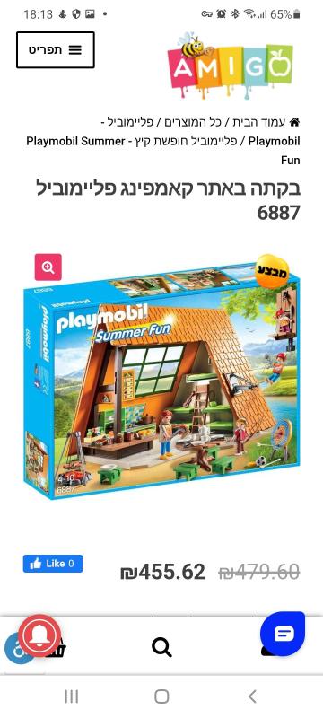 פליימוביל קמפינג במצב חדש, מכיל 136 חלקים, חסרים כמה חלקים קטנים, לא משמעותי.אפשר לקבל עוד קופסא עם הרבה חלקים של שני פליימוביל נוספים, לפחות 10 אנשים, חיות, פרחים,..... בתוספת 200שח פליימוביל 6887 קמפינג
