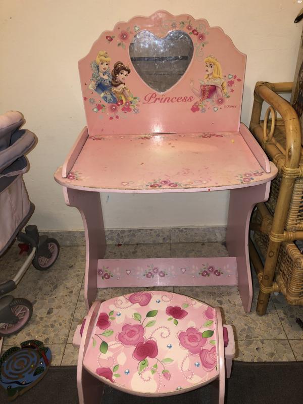 שידת איפור לילדות נסיכות עם שרפרף תואם שידת איפור לילדות נסיכות