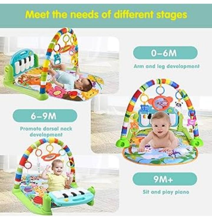 אוניברסיטה לתינוק מצוינת ומאובזרת היטב: 5 דמויות, רעשנים ואביזרים קשיחים נתלים הניתנים לפירוק והזזה, שטיח מרופד בהדפס שמח ומלבב