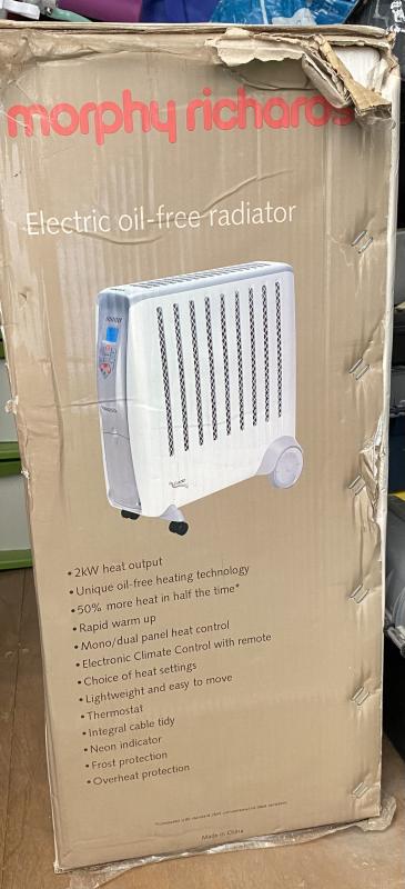 רדיאטור MORPHY RICHARDS דגם CDE2ECC הספק 2000Wרדיאטור מוגן לבטיחות מירבית בחדרי ילדים ללא שמן - 3 מצבי חימום מסך LCD בקושי היה בשימוש,באריזה מקורית כולל שלט רחוק!כל הקודם זוכה! רדיאטור MORPHY RICHARDS