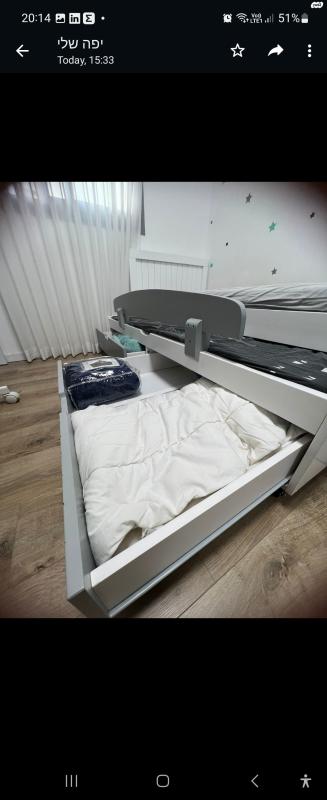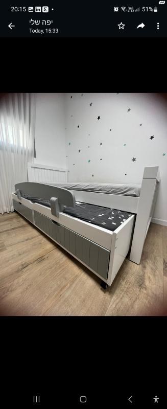 מיטה לילדים סופר איכותית של חברת עצמל'ה נקנתה לפני כשנתיים במחיר של 3000 שח שמורה כמו חדשה למיטה יש מיטת חבר נפתחת ומגרות אחסון בצבע אפור, מוכר בעקבות הזמנה של מיטת קומותיים מפאת חוסר מקום,מידות המיטה במצב סגור כולל הקנטים אורך 2.05 מטר ורוחב 95 ס"מ מיטה של עצמל'ה נפתחת עם אחסון