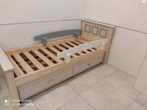 מיטה של עצמלא בצבע אלון מולבן, עם מיטת חבר נפתחת עם 2 מגירות. מידות המיטה: 2.05X93 מתאימה למזרון 190X80. המיטות נמכרות ללא מזרון. איסוף מרעננה מיטה נפתחת עם מיטת חבר