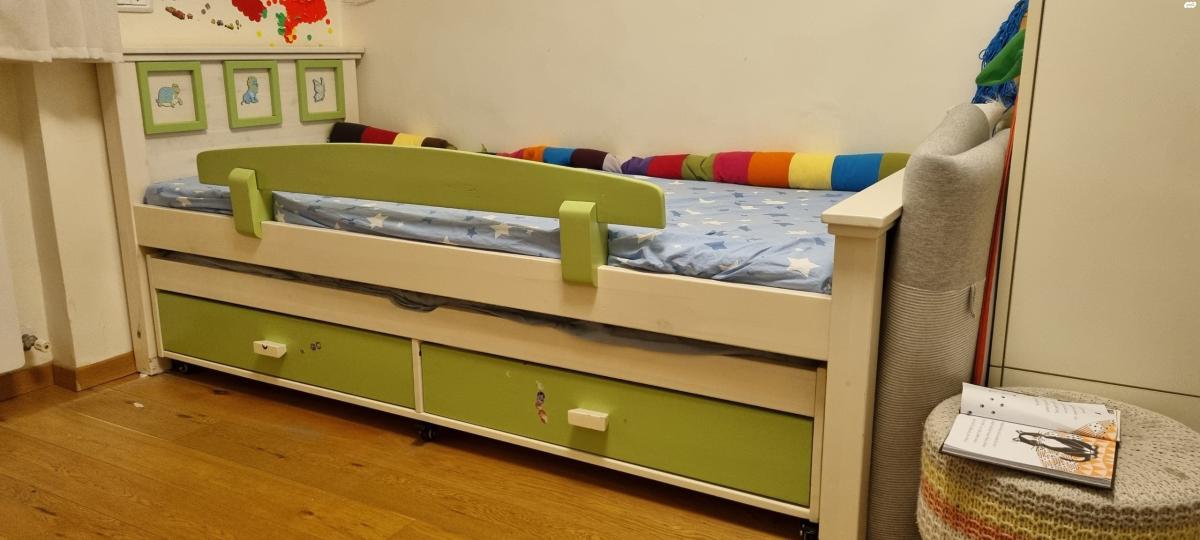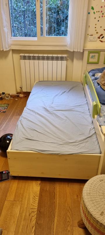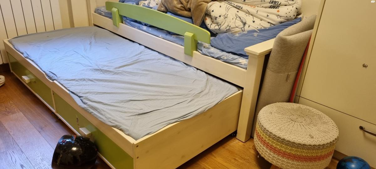 מיטת יחיד של חברת עצמלא, הכוללת מיטת יחיד, מיטת חבר ושתי מגירות איכסון גדולות.כולל מזרונים עם כיסוי כחול דוחה מים וברמת קושי מותאמת לילדים עובי 10 סמ למזרון עליון, 8 סמ למזרון תחתון.גודל חיצוני 207*93 סמגודל מיזרונים 190*80 מיטת יחיד + מיטת חבר עצמלה