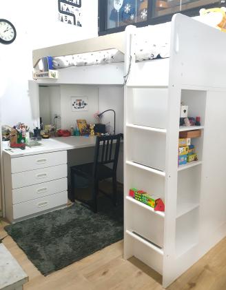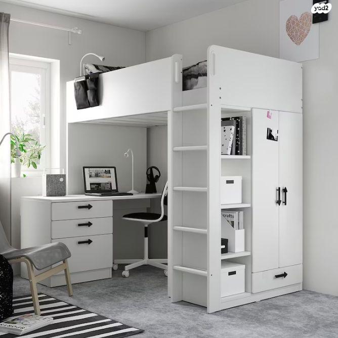 מיטת ילדים בגלריה של איקאה בשילוב ארון בגדים, שולחן כתיבה עם 4 מגירות, מראות, ו 4 מדפיםמאוד נוח ופרקטי, במצב מצוין. החלפנו את החלק המקורי של איקאה המונע נפילה (מגיע אטום לחלוטין), החלפנו לחלק שניתן לראות דרכו, אך החלק המקורי עדיין אצלנו. לא כולל מזרן. רוחב מזרן: 90 ס"מאורך מזרן: 200 ס"מגובה: 182 ס"מגובה מתחת מיטת גלריה: 142 ס"מאורך מיטה: 207 ס"מרוחב מיטה: 104 סמאורך שולחן: 148 ס"מ מיטת ילדים, ארון, שולחן, מראות
