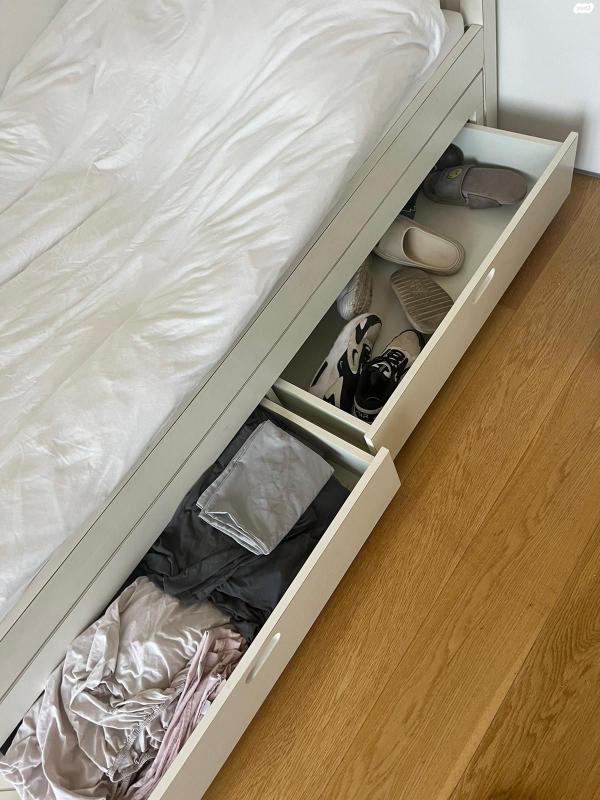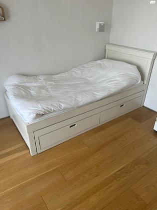 מיטת ילדים יפהפייה איכותית מאד עשויה מעץ מלא, צבע לבן קרם. המיטה במצב מצוין, שמורה מאד, נבנתה ע"י נגר. המיטה כוללת מיטת חבר נשלפת ושתי מגירות גדולות לאחסון. גודל המיטה 200X69 ס"מ, מזרן נטו 190X100 ס"מ. שני המזרנים במצב טוב מאד (הראשי ושל מיטת החבר) כל הקודם זוכה מיטת ילדים