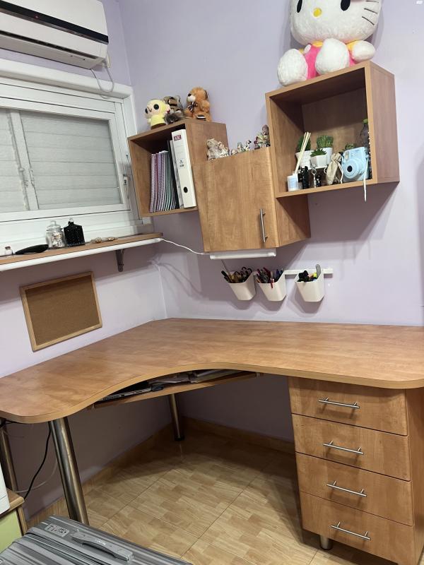 מכתביה לחדר ילדים/נוער במצב מצוין. כוללת 3 כוורות לאחסון, ארונית שבתוכה 5 מדפים ומובנית בה מראה, שולחן עם 4 מגירות ומובנה בו מדף נשלף למקלדת מכתביה לחדר ילדים