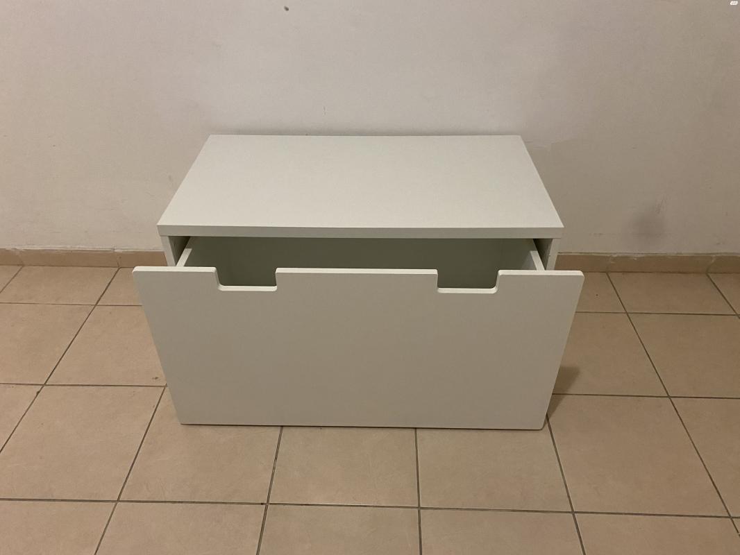 ספסל עם ארגז אחסון גדול מאיקאה מעולה לחדר ילדים לאחסון צעצועים.כמו חדש הארגז הוא על גלגליםרוחב 50גובה 49אורך 90 ספסל עם מגירה לאחסון מאיקאה