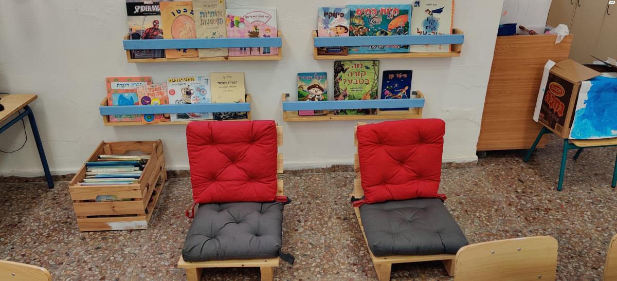 פינת זולה לישיבה לילדים פלוס ריפודים+ 4 מדפים לספרים (אפשרי כפינת ספרייה לחדר ילדים או לגן) פינת זולה לילדים+ 4 מדפים