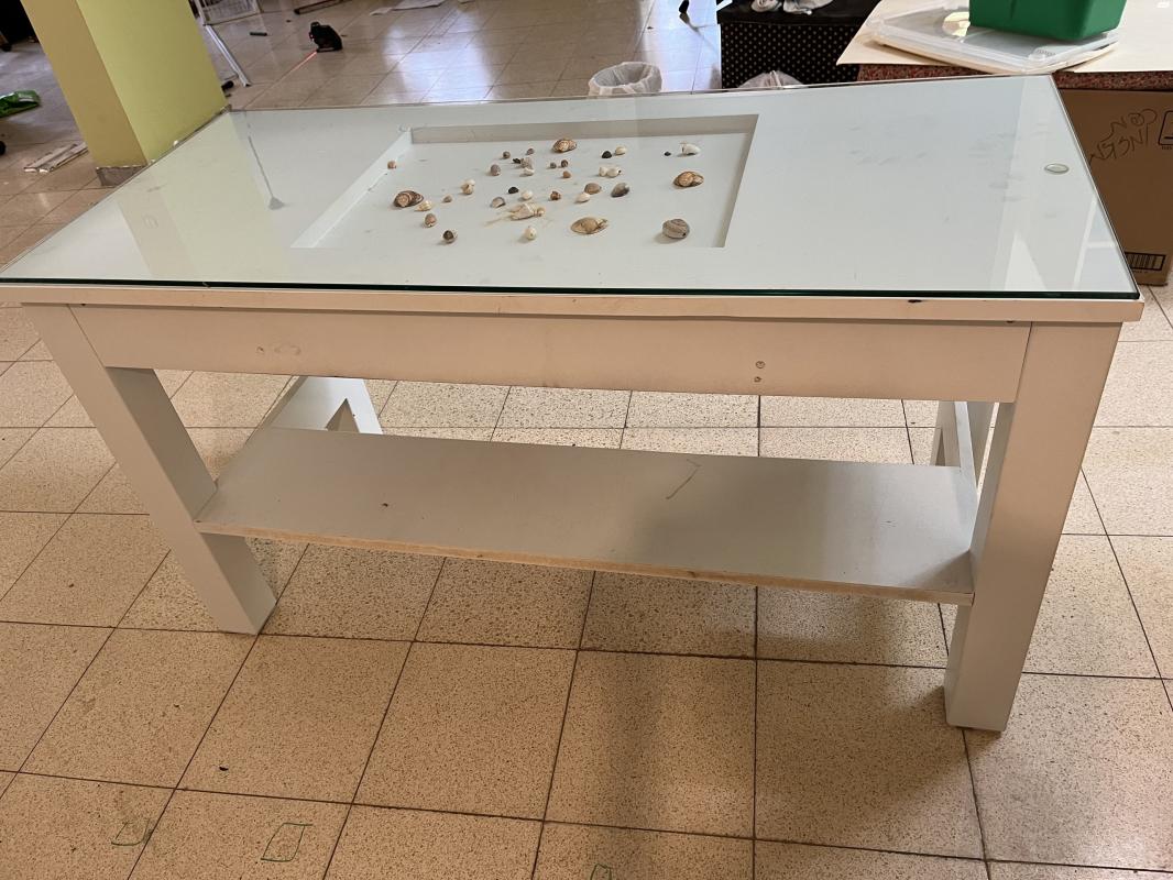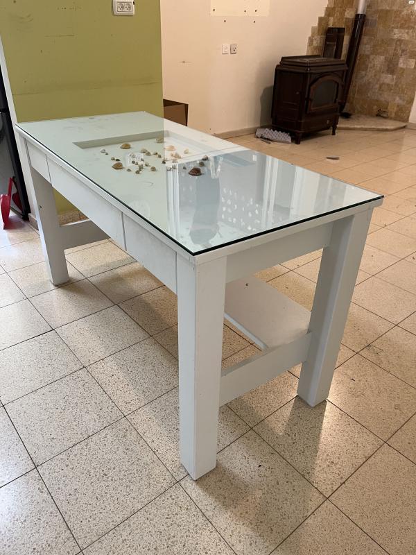שולחן כתיבה תכלת מעץ מלא שמור מאוד, ללא פגמים בכללמדף מתחת לשולחן מגש זכוכית גדול מעליו, עם שקע של ריבוע בתוכו (להוסיף דברים ליופי)מידות:עומק 60אורך 135גובה 75 שולחן כתיבה תכלת מעץ מלא