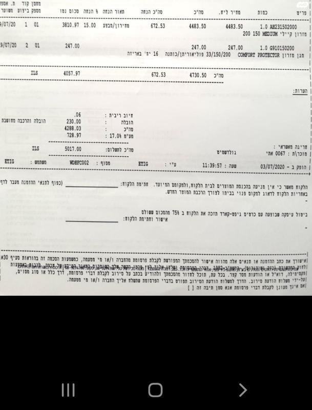 מזרן עמינח 200×150 דגם קיילי MEDIUM קשיח למחצה.כמו חדש, היה בשימוש אך ורק עם מגן מזרן! בן פחות משנתיים.נמכר עקב שיפוץ ואי התאמה במידות למיטה החדשה.מחיר גמיש מזרון עמינח