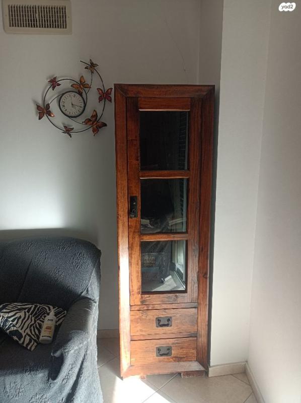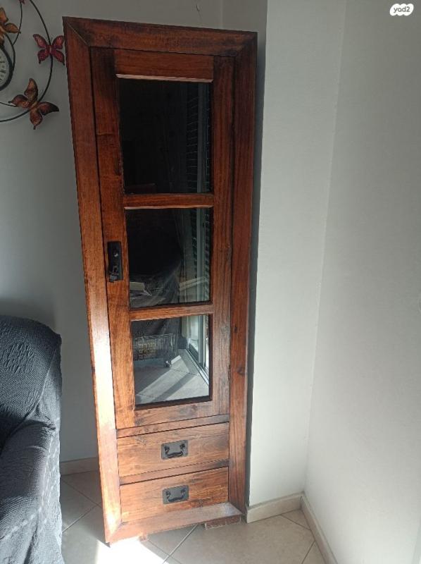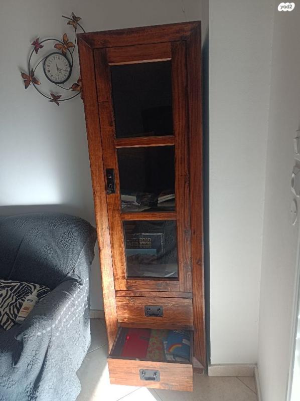 ארון ויטרינה מעץ במראה וינטג' משולב זכוכית עם 2 מגירות ומדפים ארון ויטרינה וינטג'