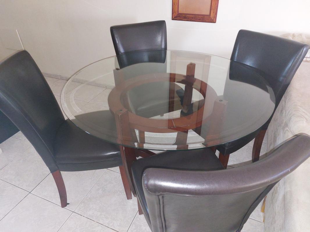פינת אוכל מעץ וזכוכית 4 כיסאות