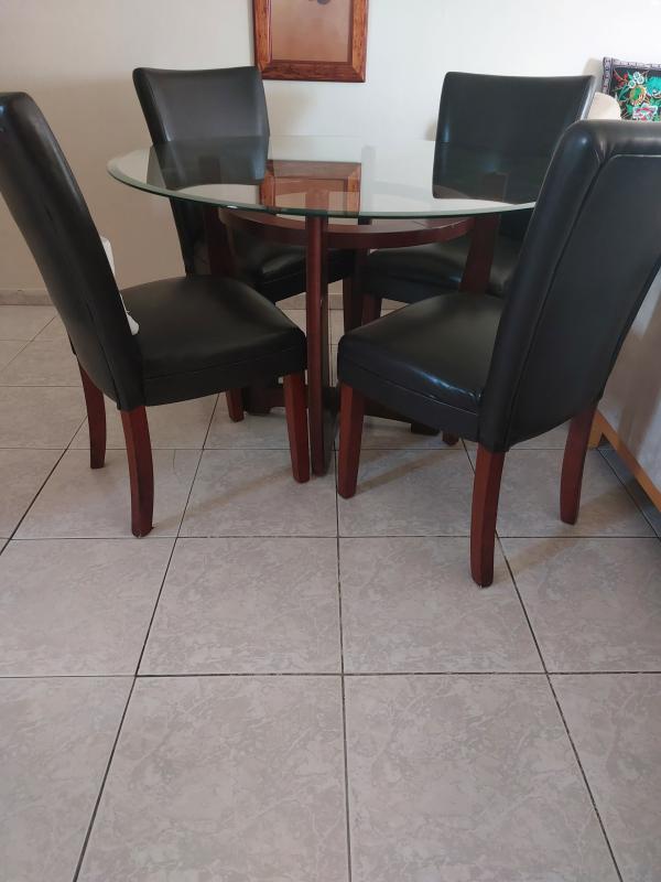 למכירה פינת אוכל מעץ וזכוכית + 4 כסאות במצב טוב פינת אוכל מעץ וזכוכית 4 כיסאות