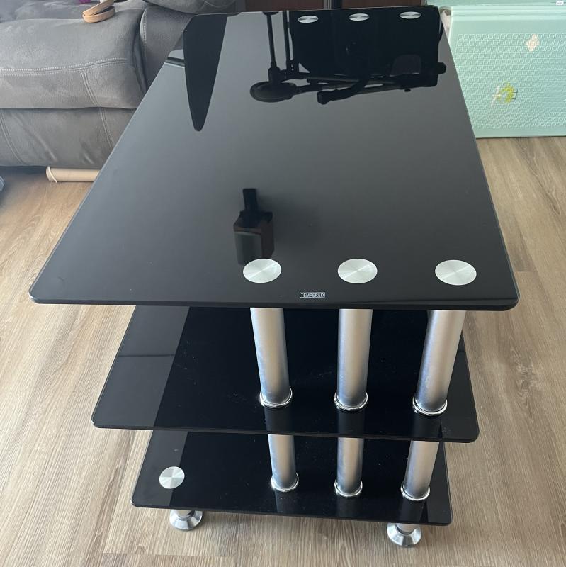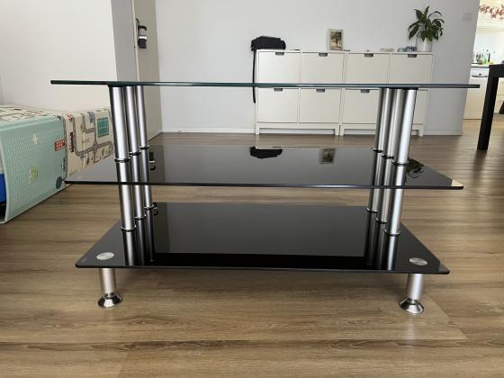 מזנון זכוכית במצב חדשמידות :רוחב - 90 ס״מ עומק - 50 ס״מ גובה - 57 ס״מ גובה מדף - 20 ס״מ צבע : שחור מזנון זכוכית שחור