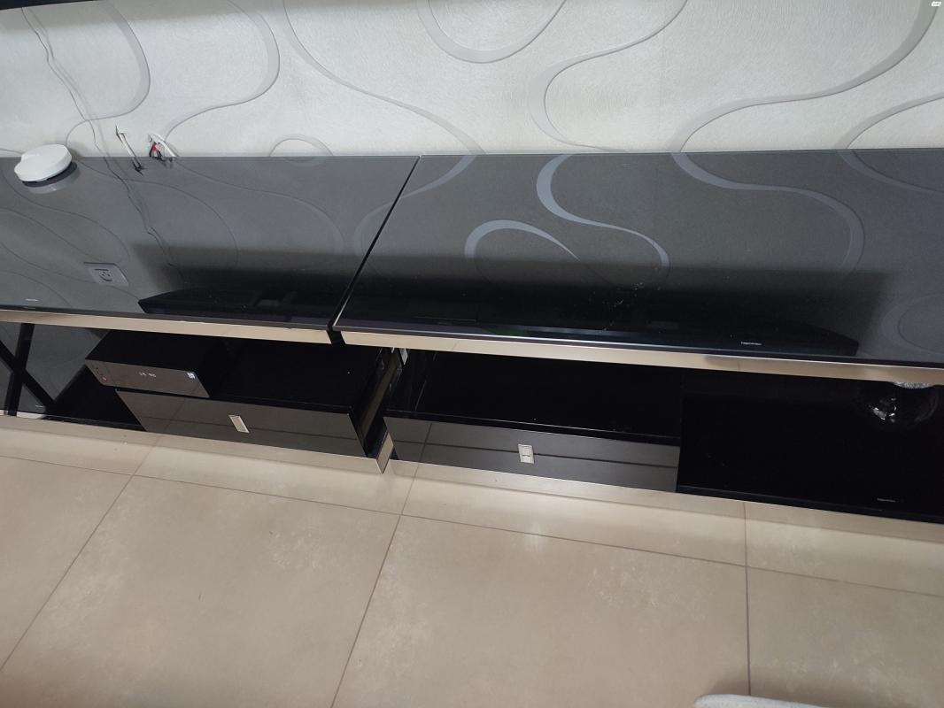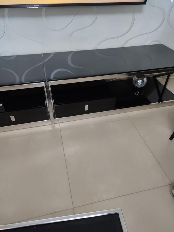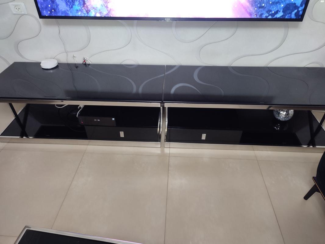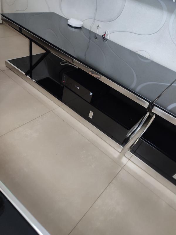 מזנון זכוכית שחורה עם ניקל של שוורץ רהיטים אורך 2.40 מזנון זכוכית שילוב ניקל
