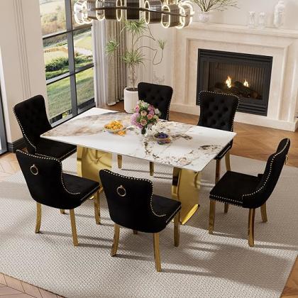 סט אוכל יוקרתי מודרני בצבע זהב 7 חלקים, סט שולחן מטבח מלבני מינימליסטי ל-6 סועדיםהפריט חדש לגמרי, מקורי ארוז בקופסהלמידע נוסף צרו קשר בכתובת: holyshopexpress@gmail.com