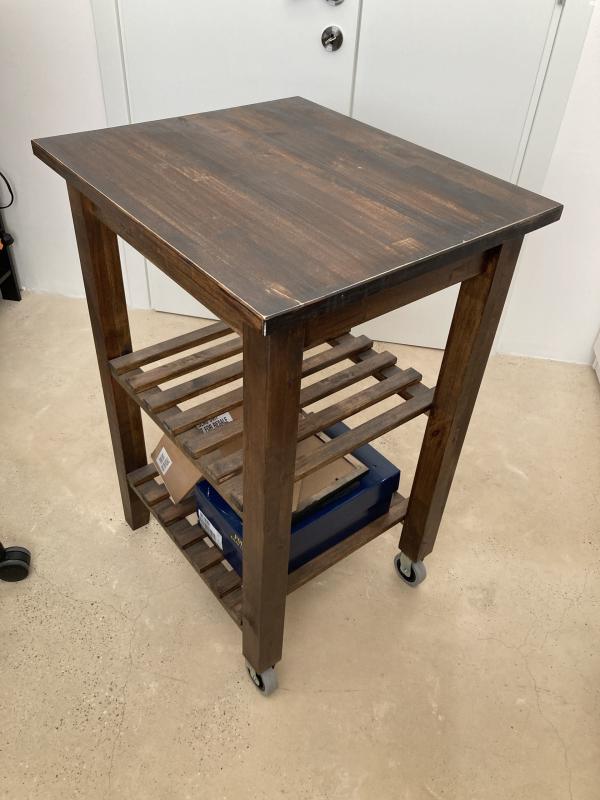 עגלה למטבח של איקאה.העגלה צבועה בלכה ורנית בצבע אגוז.הפריטים במצב טוב, עמידים מאוד ואסתטיים. ניתן לקנות 2 עגלות ב-300.שתי העגלות מצולמות במודעה עגלת מטבח איקאה צבועה בלכה שמן