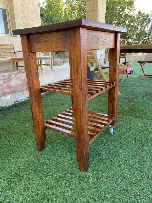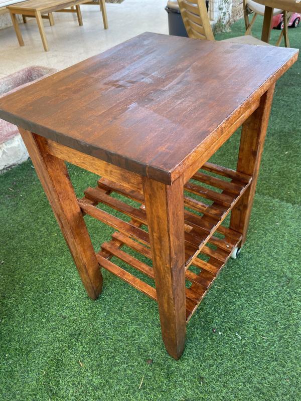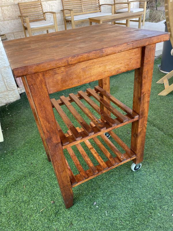 עגלת שירות למטבח מעץ מלא כולל גלגלים במצב חדש.ניתן להובלה בתוספת תשלוםמידות : אורך 60 ס״מ רוחב 50 ס״מ גובה 85 ס״מ עגלת שירות למטבח מעץ מלא