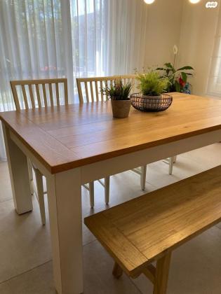 פינת אוכל ביתילי שולחן + 6 כסאותצבע שמנת בשילוב עץמידות 100x180 ,עם פתיחה 220אפשרות לתוספת ספסל (כמו בתמונה) בתוספת 400 ש"ח פינת אוכל תוצרת ביתילי