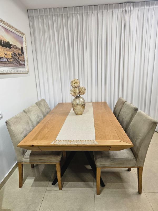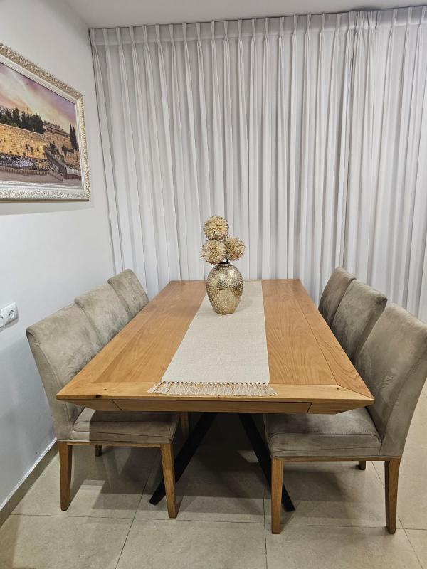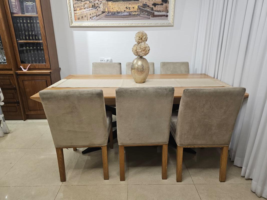 פינת אוכל במצב מצוין, השולחן כמו חדש- תמיד היה מכוסה, הכיסאות במצב טוב. אורך200 נפתח ל3 מטר. אפשרות לקנייה רק של השולחן