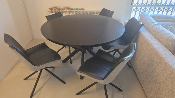פינת אוכל נפתחת במצב מצויין +5 כיסאות עור קל מאד לניקוי במצב מצויין