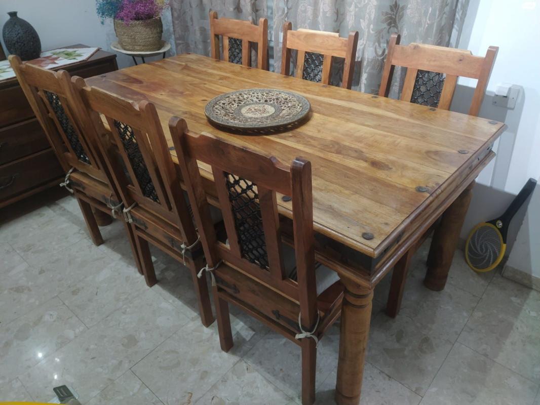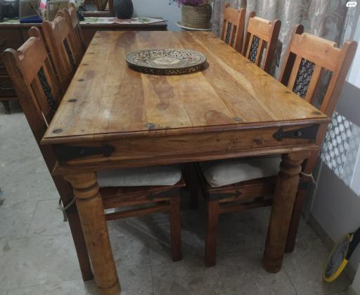 שולחן אוכל אינדונזי מעץ מלא, 8 כסאות, במצב מצוין ושמור כמו חדש שולחן אוכל אינדונזי מעץ מלא