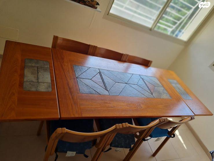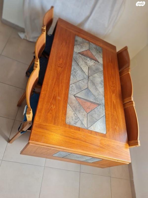 שולחן אוכל מעוטר מעץ מלא, טיק, + 6 כיסאות . בעל 2 הארכות מתקפלות. שמור מאדנקנה ברהיטי הזורע, מידות 0.90X1.60 0.90X2.40 כולל הארכות פינת אוכל הזורע