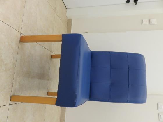 4 כיסאות דמוי עור - צבע כחול, במצב ממש טוב, מאוד נוחות, ויפות, יש להם סגנון עיצוב יוקרתי (כמו שרואים בתמונות...), הם יציבות, ויש להם עובי. מחיר: כל כיסא לבד 125 ש"ח, ס"ה ארבעתם 500 ש"ח