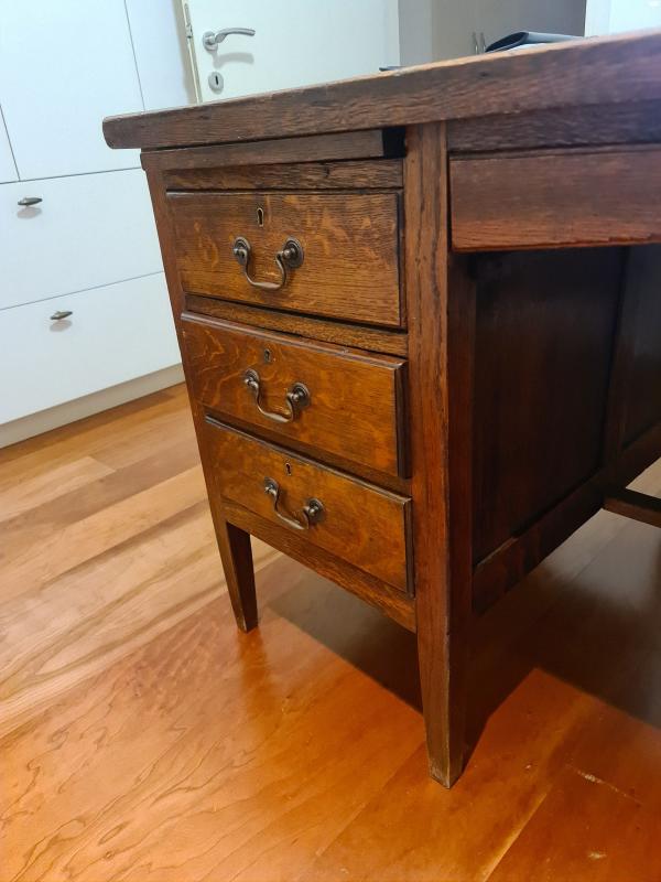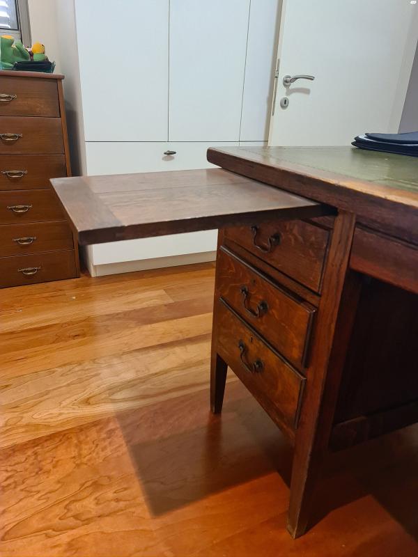 שולחן עבודה אנגלי עתיק יחודי במצב מצויין שנקנה בהולנד בעת שהייתנו בחו"ל והובא ביבוא אישי. מאפשר ישיבה של שני אנשים אחד מול השני. חיפןי עור עליון במצב מצויין. למכירה עקב מעבר דירה. יהיה פנוי למסירה החל מה 3.8 שולחן עבודה אנגלי עתיק