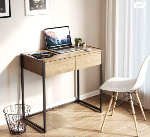 שולחן עבודה משולב עץ ומתכת עם 2 מגירות. הרגליים עשויים מתכת שחורה. סגור באריזה. רוחב 80 ס"מ, עומק 45 ס"מ, גובה 75 ס"מ שולחן כתיבה עם מגירות