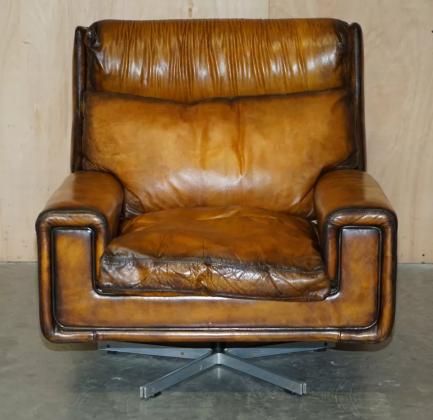כורסת נוחות מסתובבת מעור בצבע חום ויסקי משוחזרת משנות ה-70, סט חלקי של הדום וכורסת נוחות.הפריט חדש לגמרי, מקורי וארוז בקופסה.למידע נוסף צרו קשר בכתובת: holyshopexpress@gmail.com