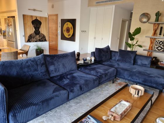 מערכת ישיבה אורך 3.70 מ' שזלונג 2.00 מ' בצבע כחול קורדרוי מערכתישיבה כחול קורדרוי 3.70 מ