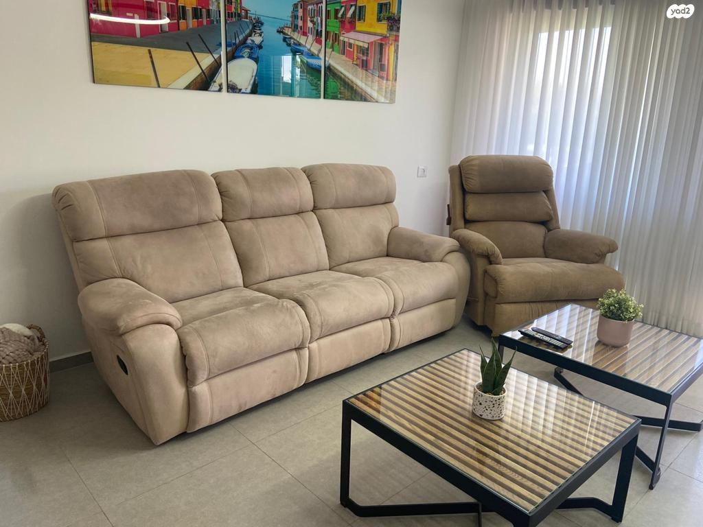 מערכת ישיבה של אמריקן קומפורט במצב מעולה - ספת 3 מושבים (2 מושבים קיצוניים נפתחים עם ריקליינרים) ובנוסף כורסא מפנקת שנפתחת עם ריקליינרים מערכת ישיבה אמריקן קומפורט