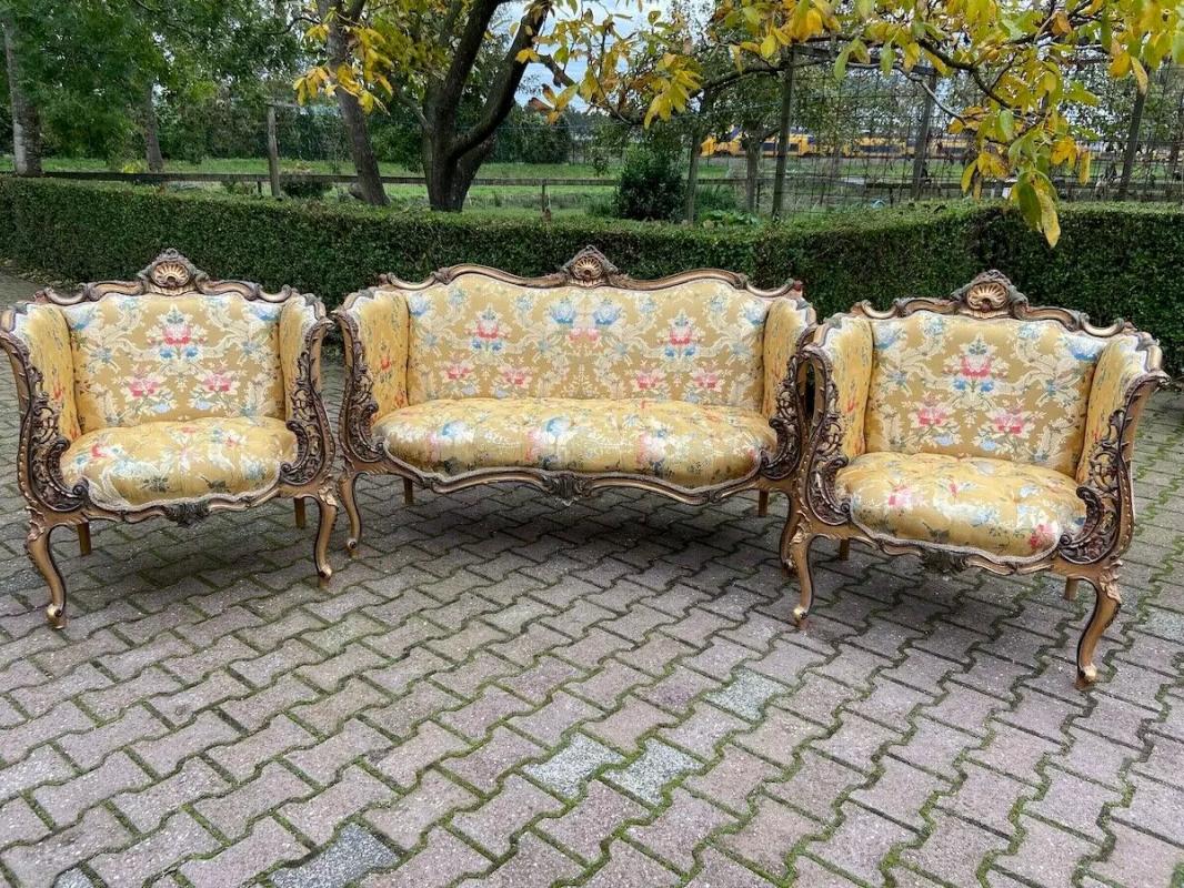 סט ספות צרפתי אלגנטי בן 3 חלקים בסגנון לואי ה-16 - דמשק זהב. מיוצר בהזמנה.הפריט חדש לגמרי, מקורי וארוז בקופסה.למידע נוסף צרו קשר בכתובת: holyshopexpress@gmail.com