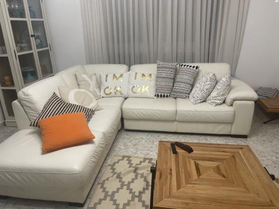 סלון עור איטלקי פינתי +שולחן במצב חדש +2 כורסאות מעץ מייפל ריפוד חדש + מיזנון סלון עור איטלקי פינתי במצב חדש