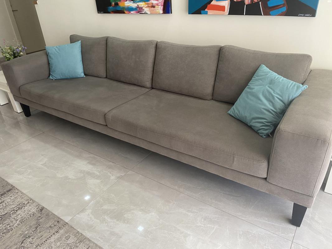 סלון תלת מושבי , ריפוד בד דוחה כתמים. רוחב 3 מטר אורך 1 מטר ריפוד מתפרק ורחיץ כולל 2 שולחנות צד מעץ ( 60*60 ) גובה 40 סמ. שמור מאוד , בהזדמנות !!! סלון תלת מושבי